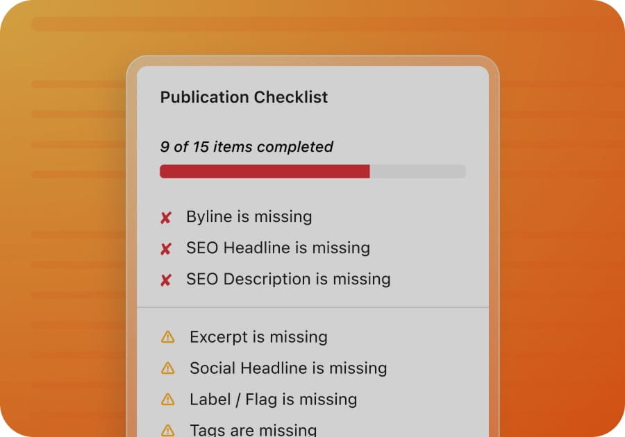 Publication checklists ensure editorial standards before publishing